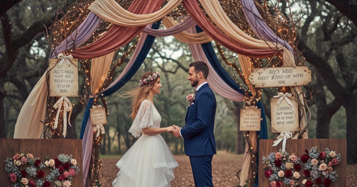 A mesebeli romantika trendje a álomszerű, filmes romantikára épít. A színek a poros rózsától a levendulán át a mély kékig terjednek. A részletek nosztalgikusak: szalaggal átkötött papírok, napló stílusú elemek, préselt virágok és szív alakú díszek jellemzik ezt a stílust. Ez a stílus ideális választás, ha az esküvőd érzelmes és személyre szabott hangulatát szeretnéd elérni.